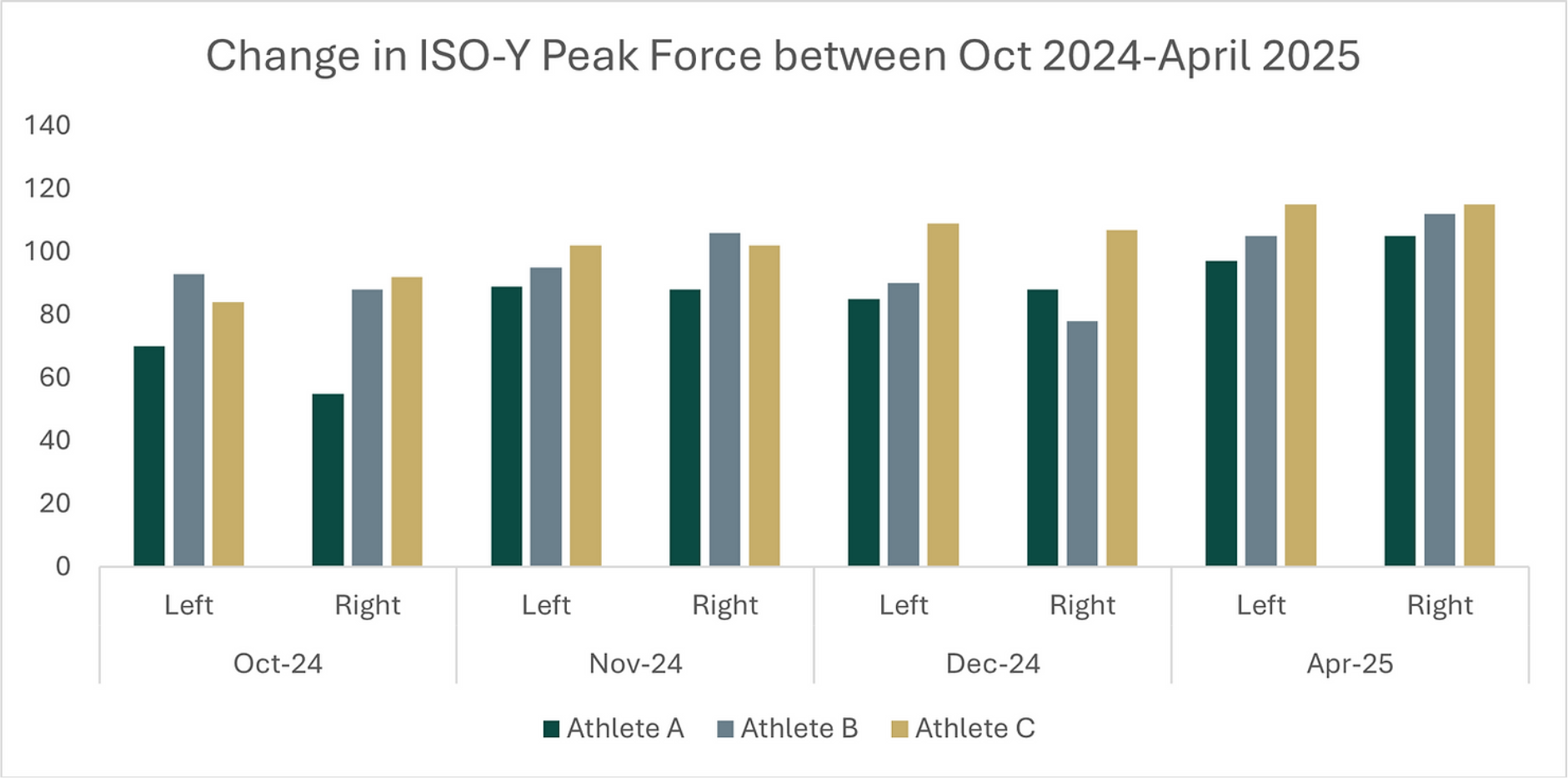 Initial test results, alongside self-reported injury and pain histories, laid the groundwork for a growing normative database. Periodic re-testing throughout the season has proven valuable in identifying higher-risk periods (e.g. during intense training blocks or pre-competition) and shaping S&C strategies accordingly.