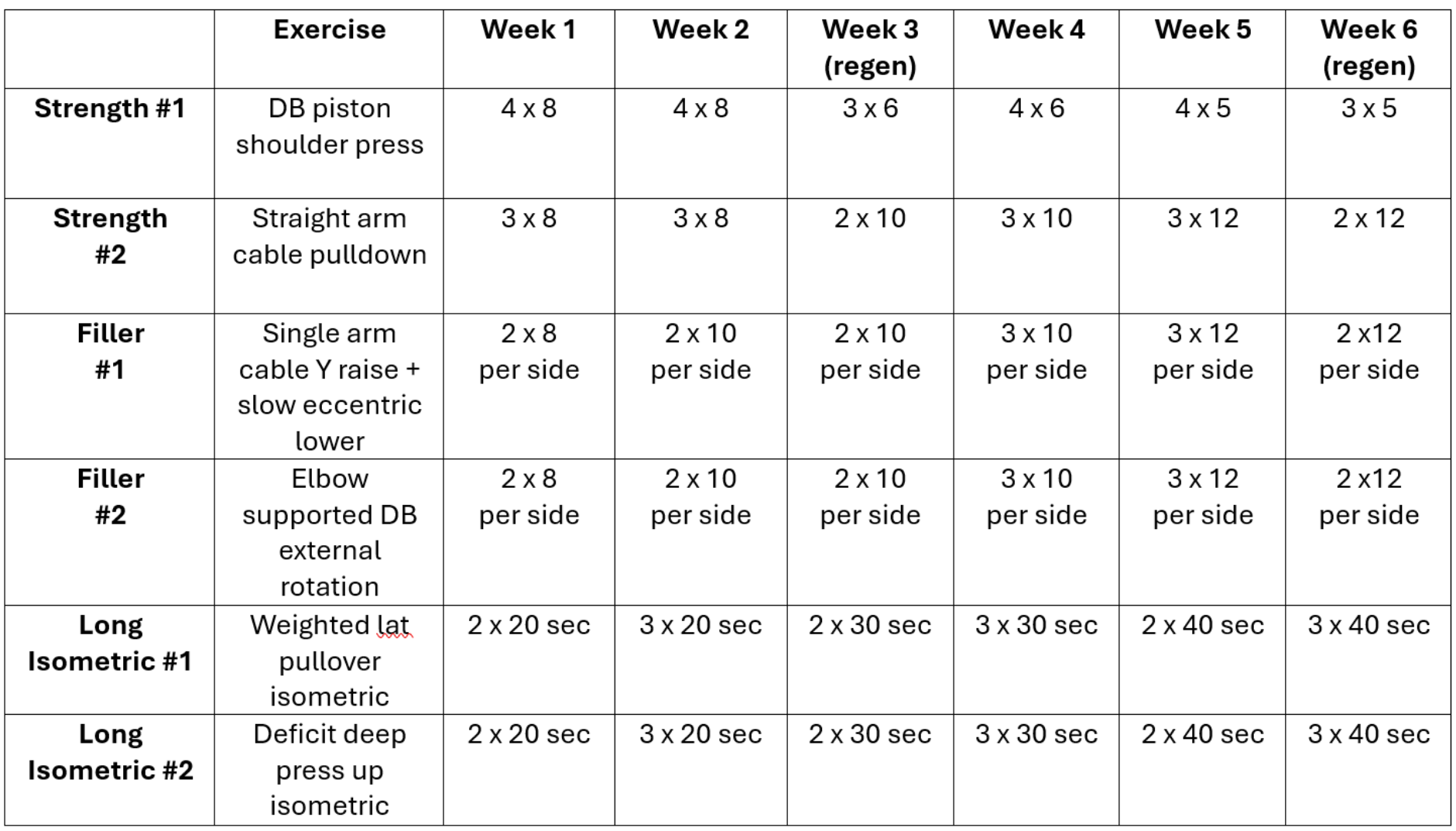 To address these, I implemented a matrix of exercises with progressions and regressions, ensuring flexibility for individual needs within group sessions. With two 60-minute sessions per week, shoulder health had to be integrated seamlessly into a broader performance programme.